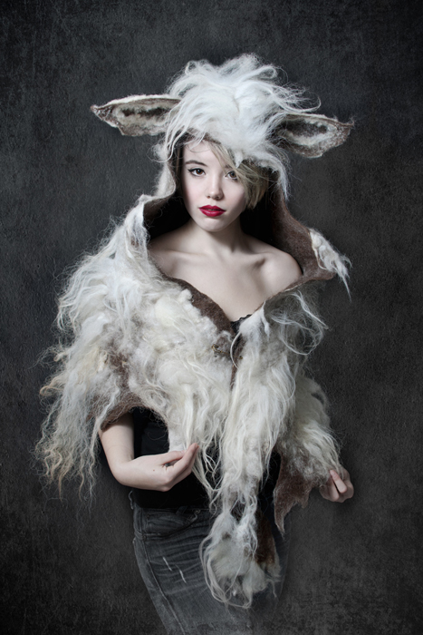 When I started photography I saw a picture from a wool felt designer Barbara Keal who make hoodies, hats and capes from wool that were animal inspired. I searched the internet but couldn't find anything like it.