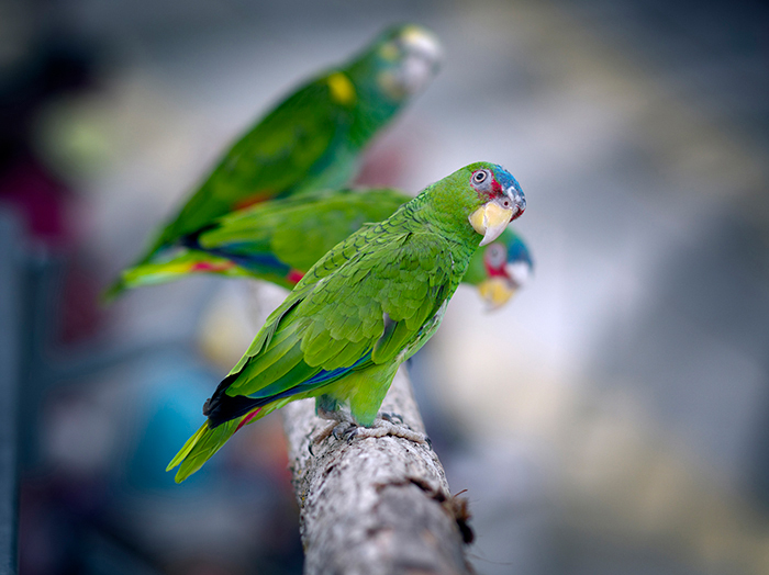 You can also capture the look of a bird. There was a bird show at the Beauval Zoo. After the show, we saw the birds landing and at one point, I saw these parrots on a branch, I said to myself, let's try to see what it gives. And in the end, I see it questioning, curious. Pretty cool.