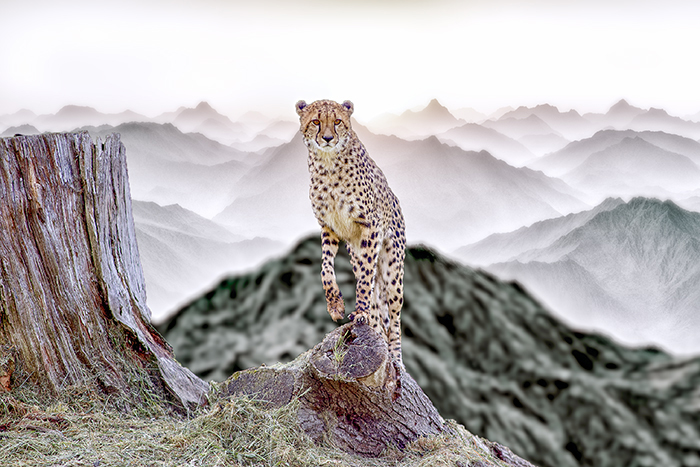 You can also do photo editing with the animal and its look. This guepard was shot in the feline park and I wanted to stage it. So, I made a photo montage to magnify this view of the animal. He offers me here his look, but it seems to me interrogative, as if I had surprised him or as if he was telling me, little human, you dare to want to meet my eyes? Beware, I am dangerous and wild, I defend my young at the price of my life.