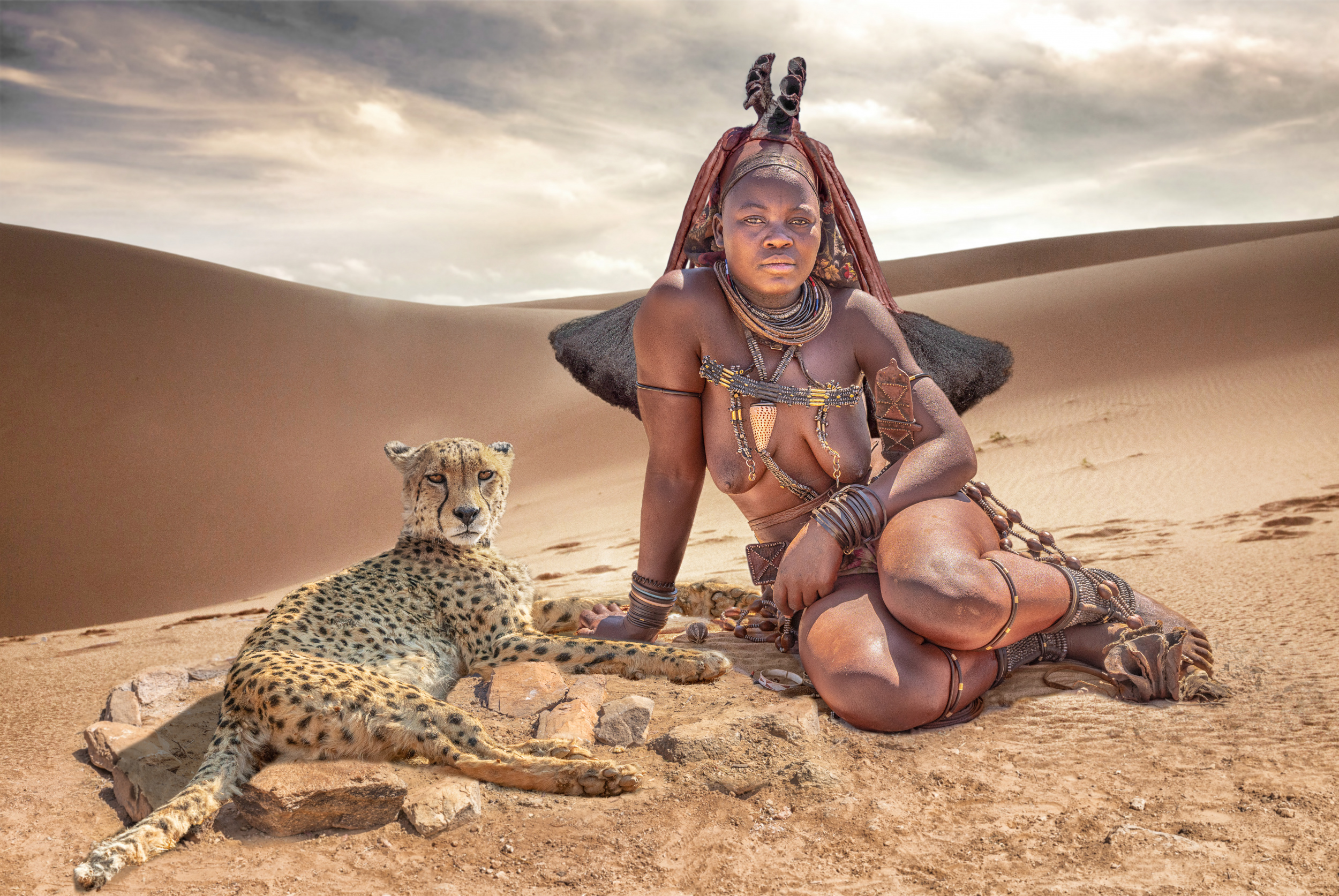'Desertstorm' is a shot from a free elephant, taken in the Etosha Natrional Park In Namibia. It was a group of 3 elephants. One of them was running straight towards our jeep at high speed, kicking up the sand. Shortly before reaching our car, he trotted and turned away. That moment was both frightening and highly fascinating at the same time. In post-production, I increased the effect of the sand to add drama. „Desertstorm“ has travelled to many exhibitions, has been published in several magazines and has been awarded with eight gold medals in competitions. The elephant is the symbol of strength, freedom and power. It is considered a lucky charm for wealth and health, which is why a huge enlargement is hanging in our home.