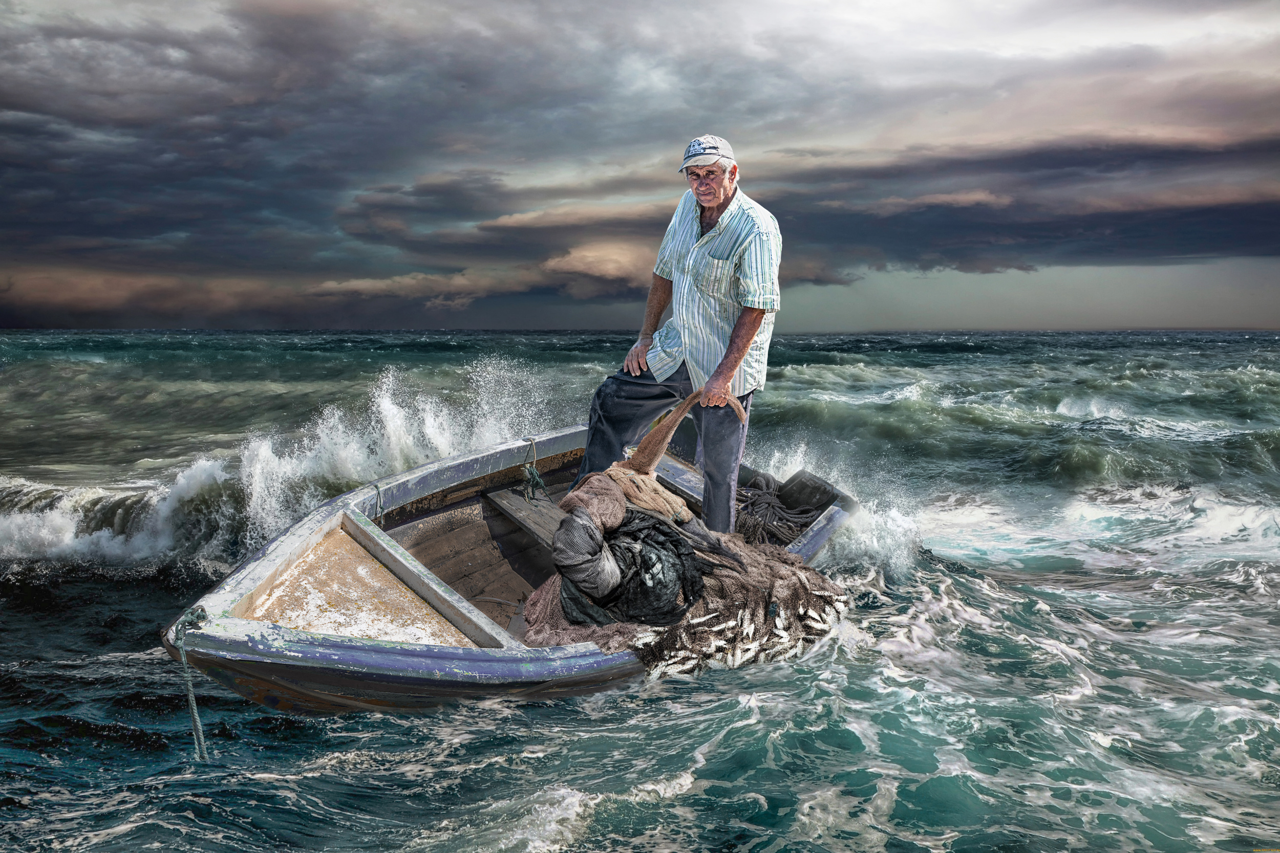 I love to be creative, be it with comb and scissors as a hairdresser, brush and paint as a picture painter or camera and computer as a photographer. In the beginning, of course, there is always the need to learn the craftsmanship from scratch. Creativity then begins to unfold from this basis. There‘s that magical moment in painting when you stand in front of the pristine white canvas and you can glimpse a vision of the finished painting in your mind. It‘s the same with photography. The basis is a photo that was taken spontaneously or was specifically planned. But just pressing the shutter button at the perfect moment, with the perfect setting is not enough of a challenge for me. I love composing new stories with my photos and making the seemingly impossible possible. So, the starting point can be a simple snapshot of a fishing boat, which inspires me to turn this into a rough sea with a lot of drama, light and shadow to create a spectacle picture.