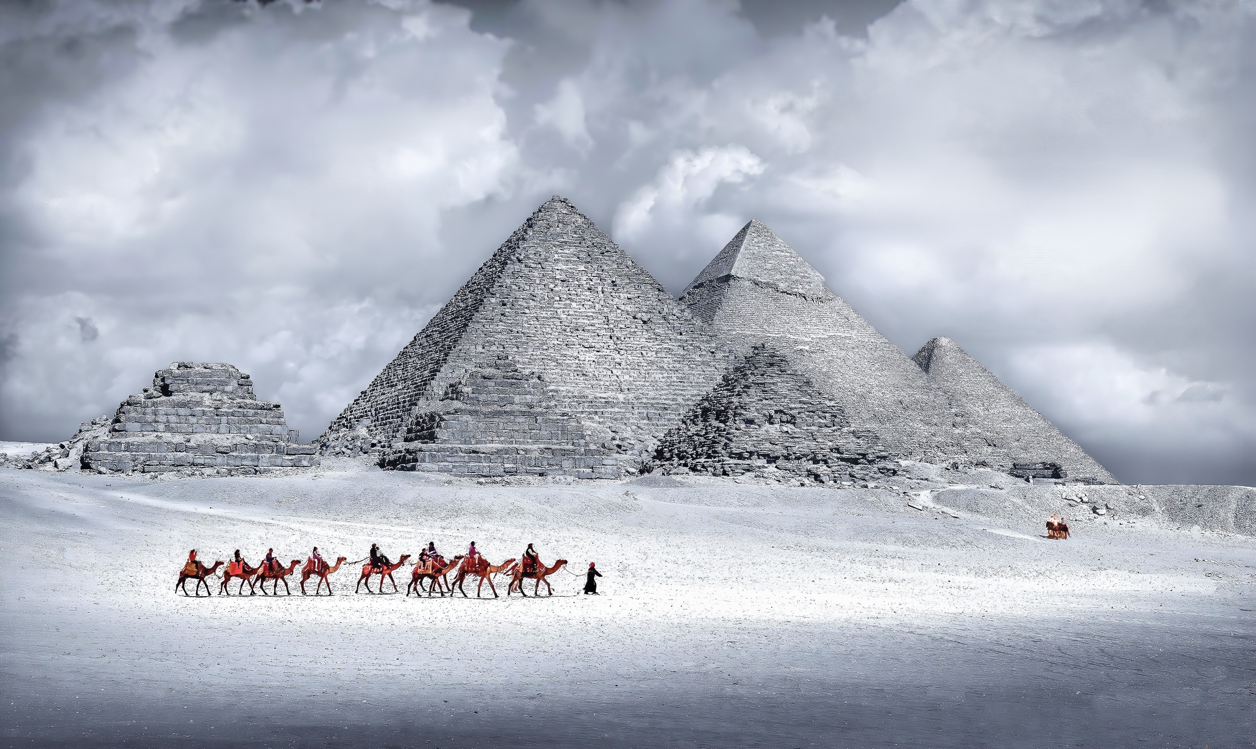 Pyramids of Giza belong to the most important historical sites in Egypt. They are located in the necropolis of Giza and are part of a series of ancient monuments that also include the Pyramid of Khufu, the Great Sphinx of Giza, and many others. For thousands of years, they were the tallest man-made structures in the world. Today, they are part of UNESCO's World Heritage Sites and considered to be one of the Seven Wonders of the Ancient World.